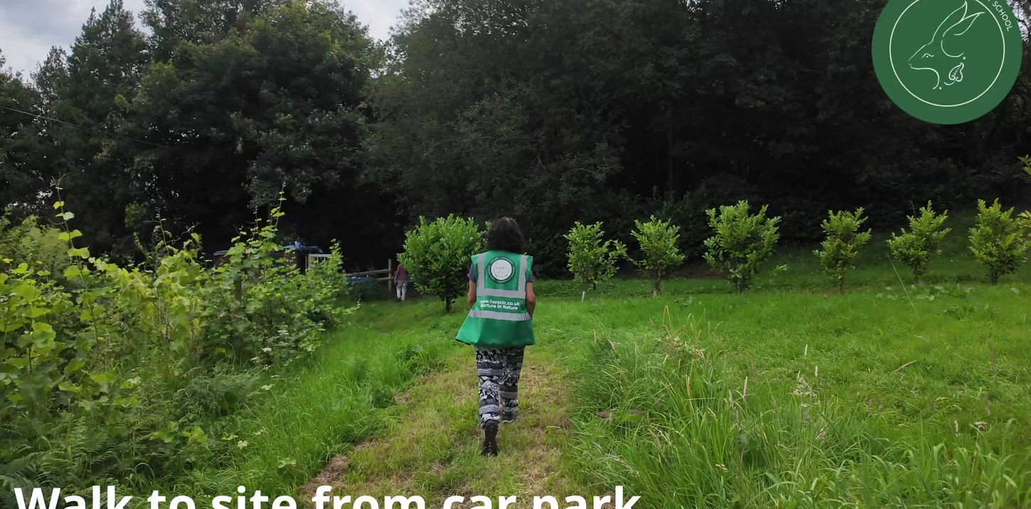 Please see the video below of how to drive to the site from Plump Hill. Please park in the Oakraven Field Centre car park. From the car park you will see a gate with our green banner onto the Field Centre recreation Field. Follow the grass path through the field past the grapevines towards the brown shed. You will see our woodland gate with another HARE banner.